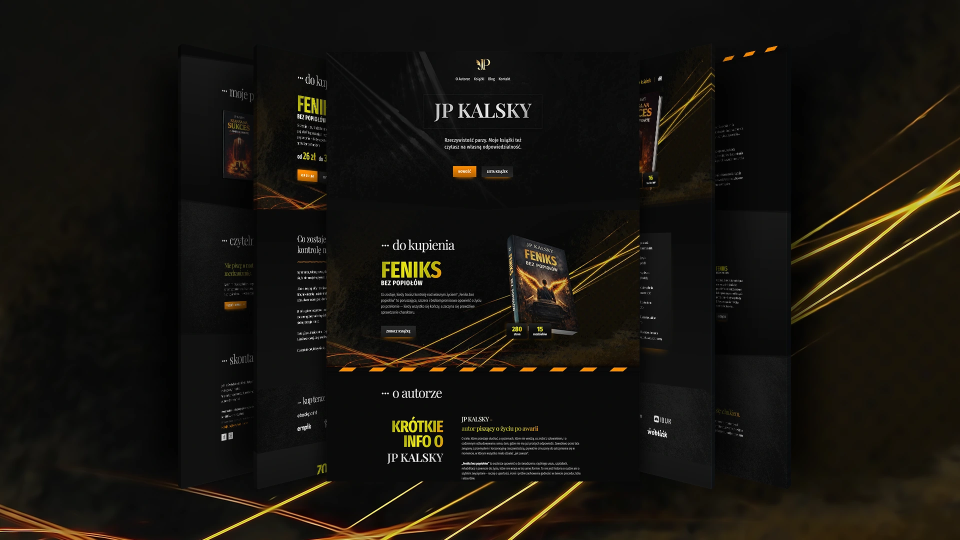 Warstwa wizualna została stworzona po wstępnym przedstawieniu koncepcji przez Zleceniodawcę, w której istotą był nacisk na efekt promocyjny dzieł Autora. Końcowy efekt został przyjęty z dużym zadowoleniem. Dodatkowo stworzono zestaw grafik profilowych dla wskazanych przez Zleceniodawcę portali społecznościowych.